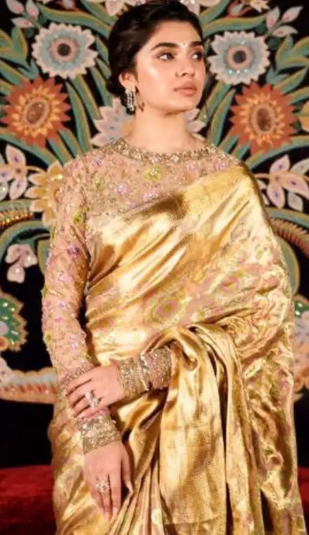 3. Diadem – Ashirah Sil: Golden Pure Kanchipuram Tissue Silk Saree