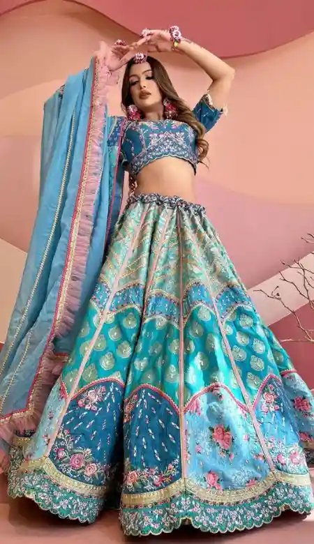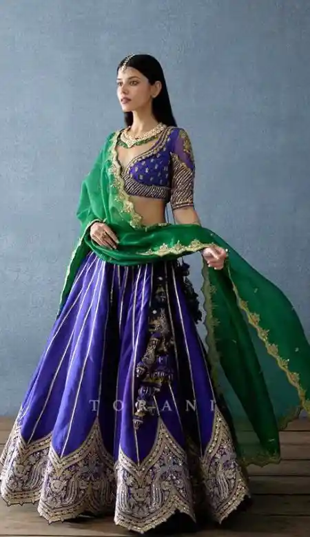 In the previous old-fashioned days, most of the women used to wear single-color lehengas like totally Pink, Red, Blue, Violet, Yellow, and some more. In the Gen Z days, girls are now focusing on the latest collections of lehengas, diadem – bridal lehe.