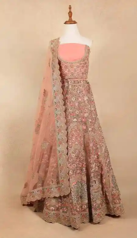 Light Peach Raw Silk Bridal Lehenga with Floral Embroidery