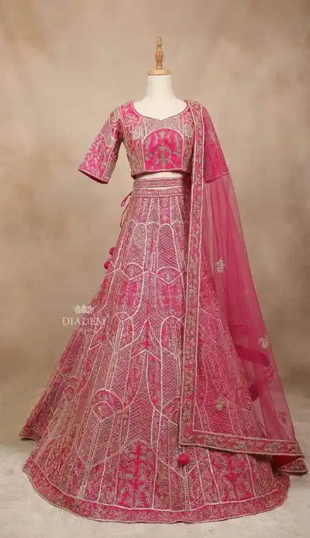 Pink Bridal Lehenga with Flower Resham Embroidery – Diadem – Bridal Lehe